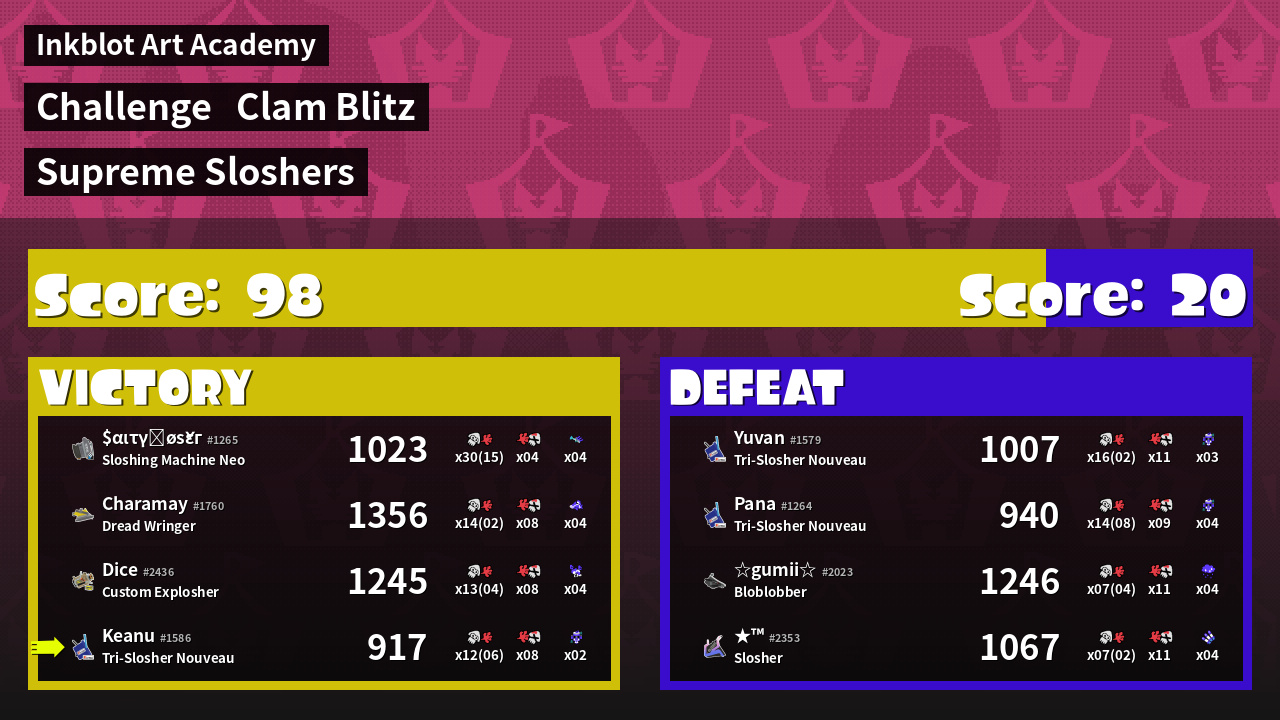 | Challenge | Supreme Sloshers Go forth and slosher the opposition! | ||