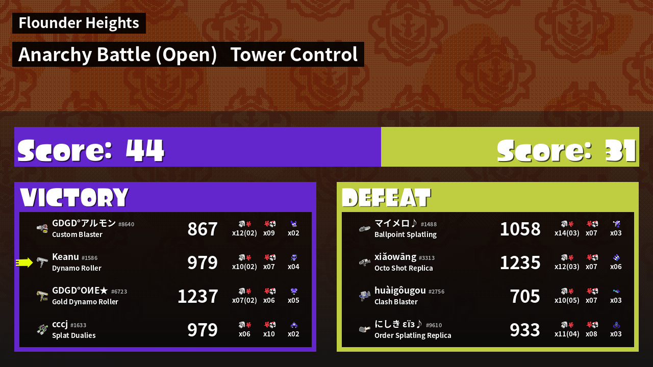 | Mode | Tower Control - Anarchy Battle (Open) | ||