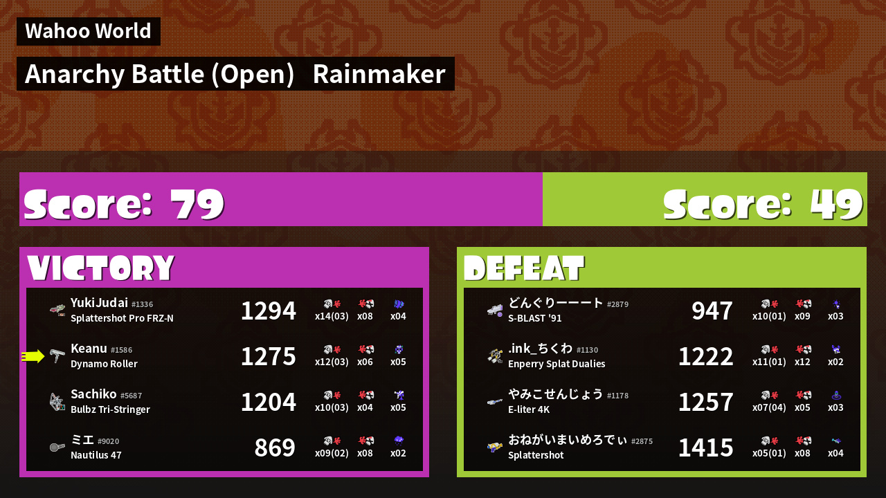 | Mode | Rainmaker - Anarchy Battle (Open) | ||