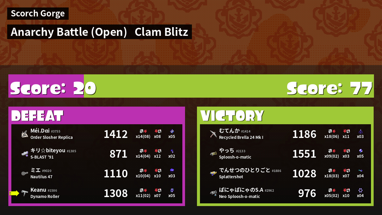 | Mode | Clam Blitz - Anarchy Battle (Open) | ||