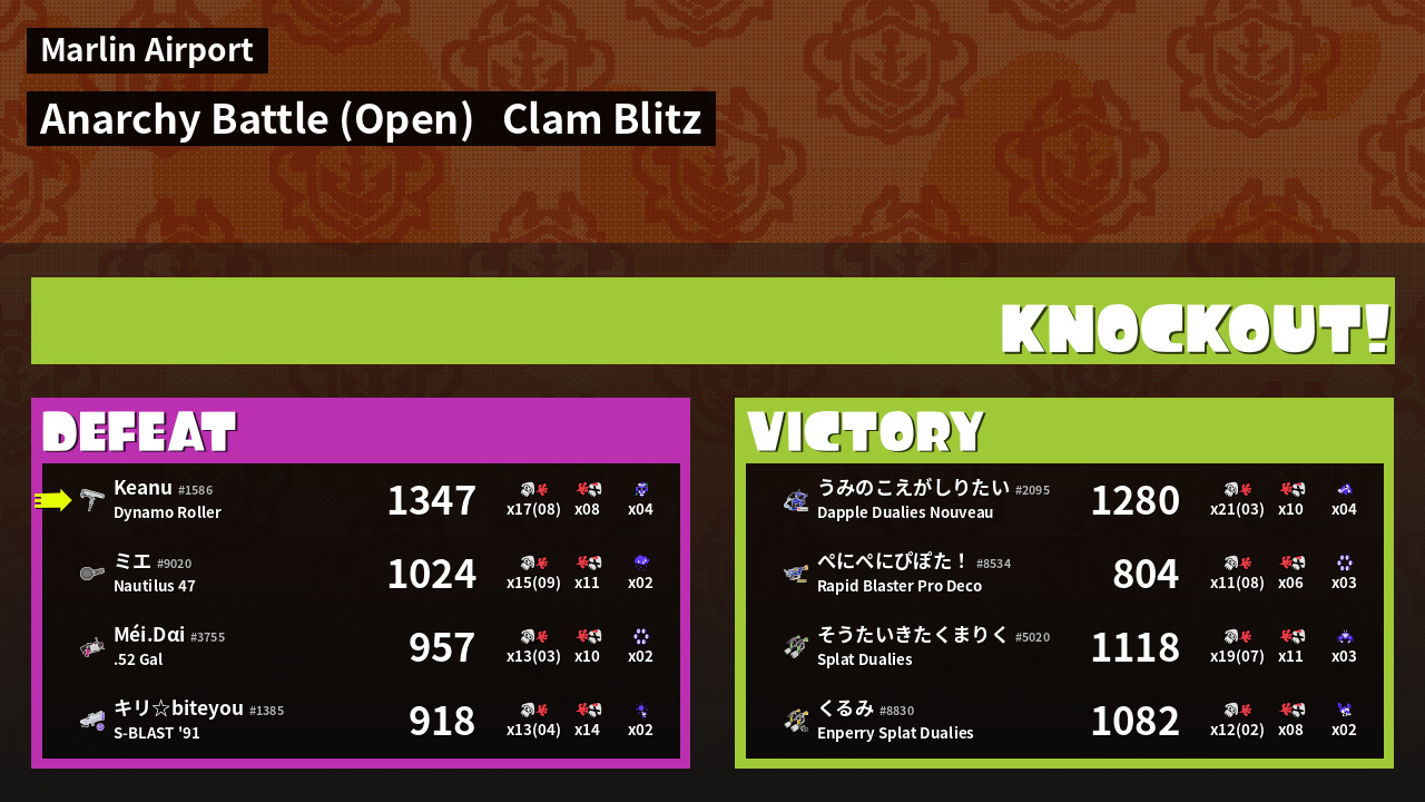 | Mode | Clam Blitz - Anarchy Battle (Open) | ||