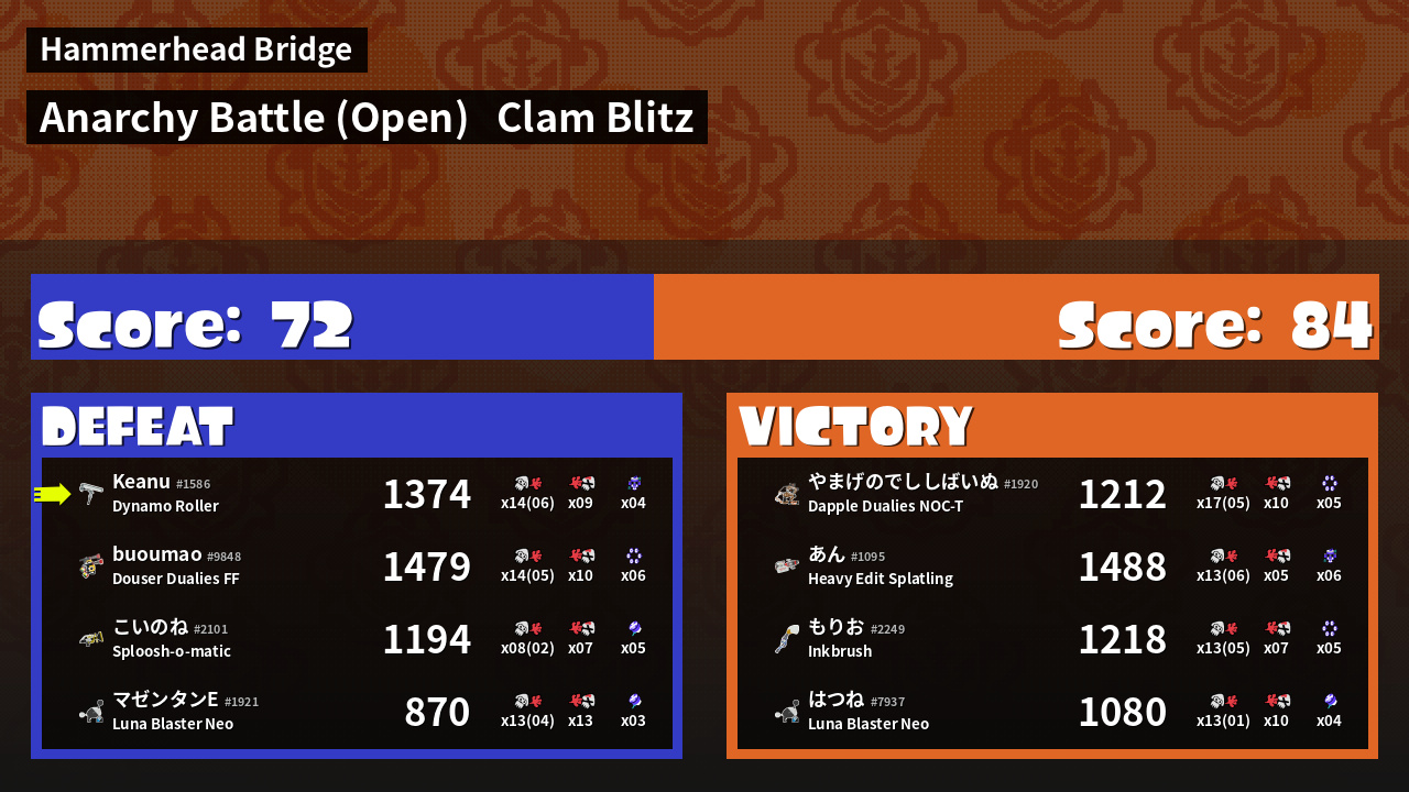 | Mode | Clam Blitz - Anarchy Battle (Open) | ||