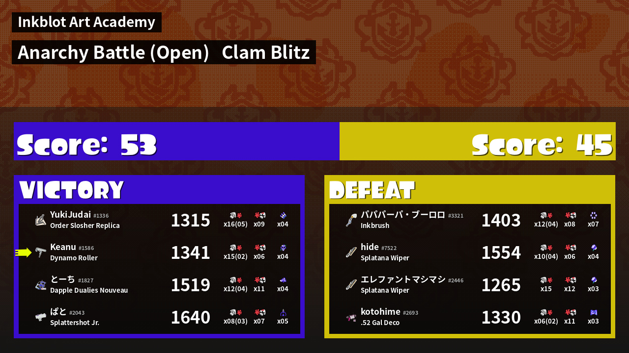 | Mode | Clam Blitz - Anarchy Battle (Open) | ||