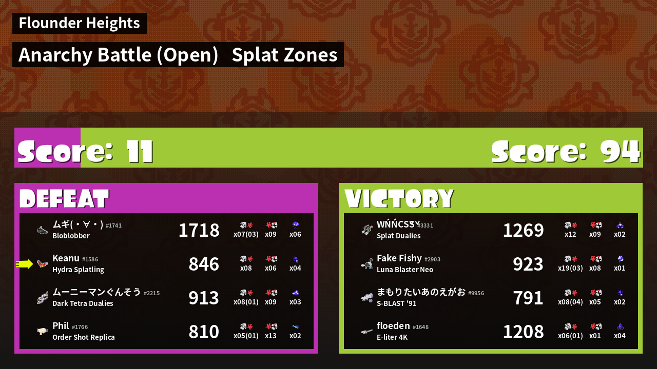 | Mode | Splat Zones - Anarchy Battle (Open) | ||