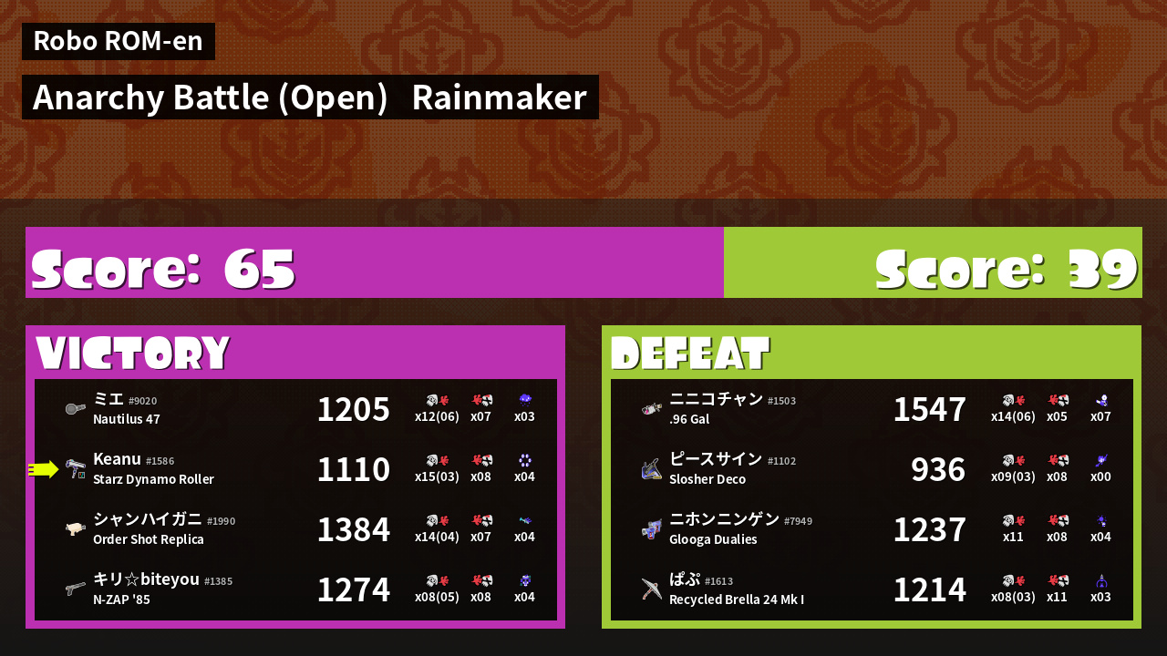 | Mode | Rainmaker - Anarchy Battle (Open) | ||