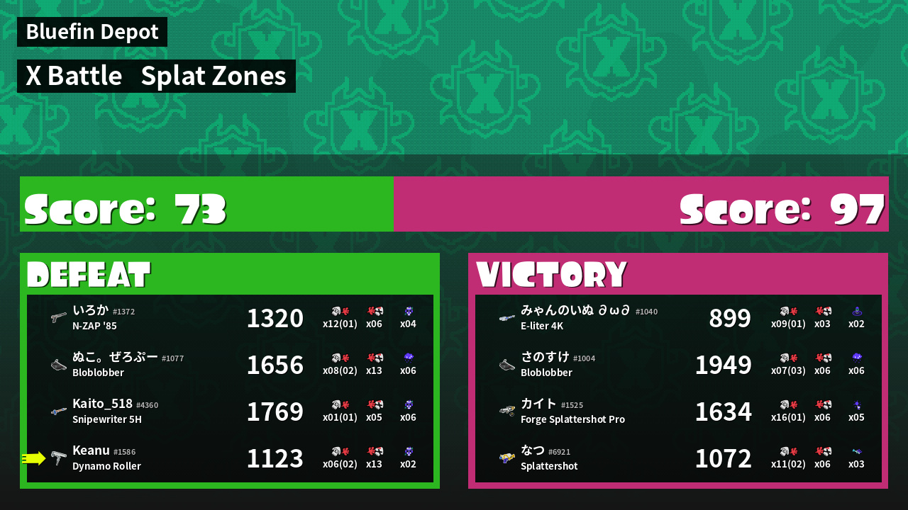 | Mode | Splat Zones - X Battle | ||