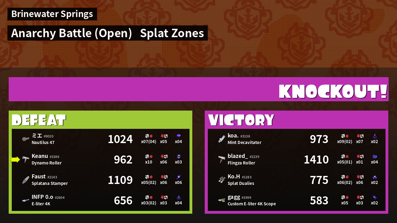 | Mode | Splat Zones - Anarchy Battle (Open) | ||