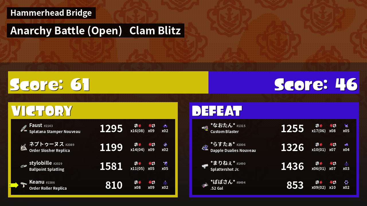 | Mode | Clam Blitz - Anarchy Battle (Open) | ||