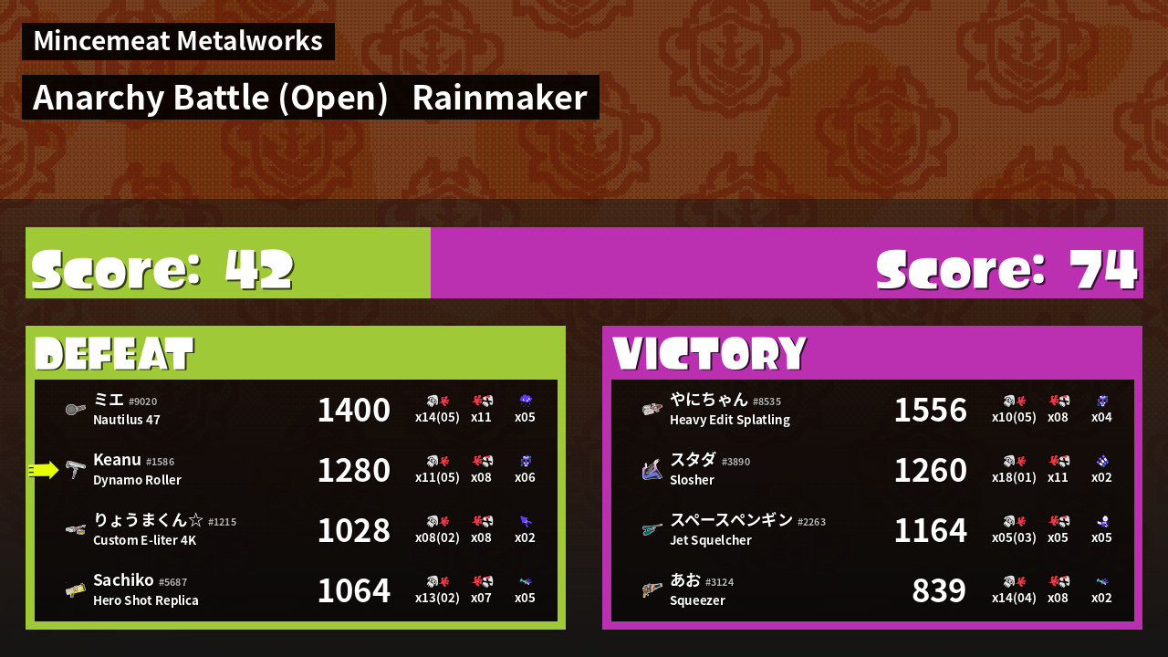| Mode | Rainmaker - Anarchy Battle (Open) | ||