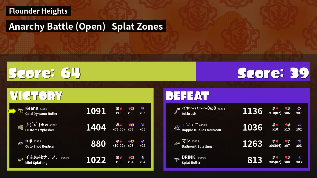 | Mode | Splat Zones - Anarchy Battle (Open) | ||