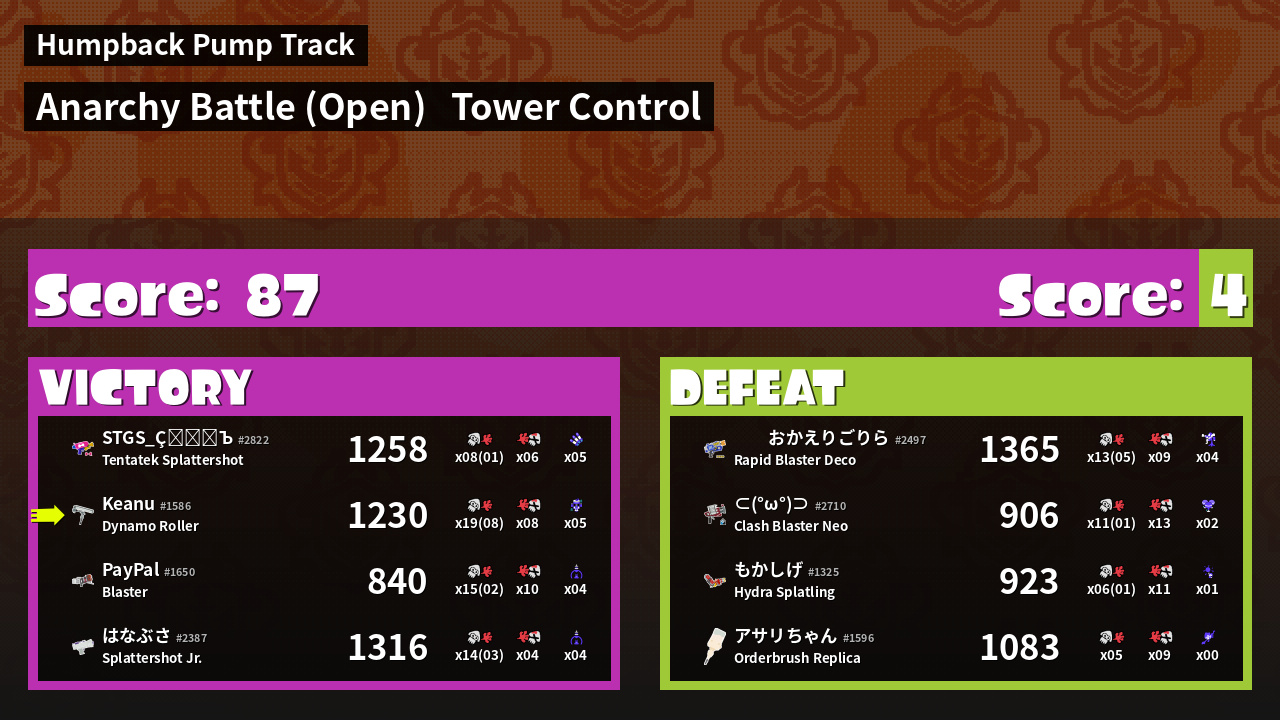 | Mode | Tower Control - Anarchy Battle (Open) | ||