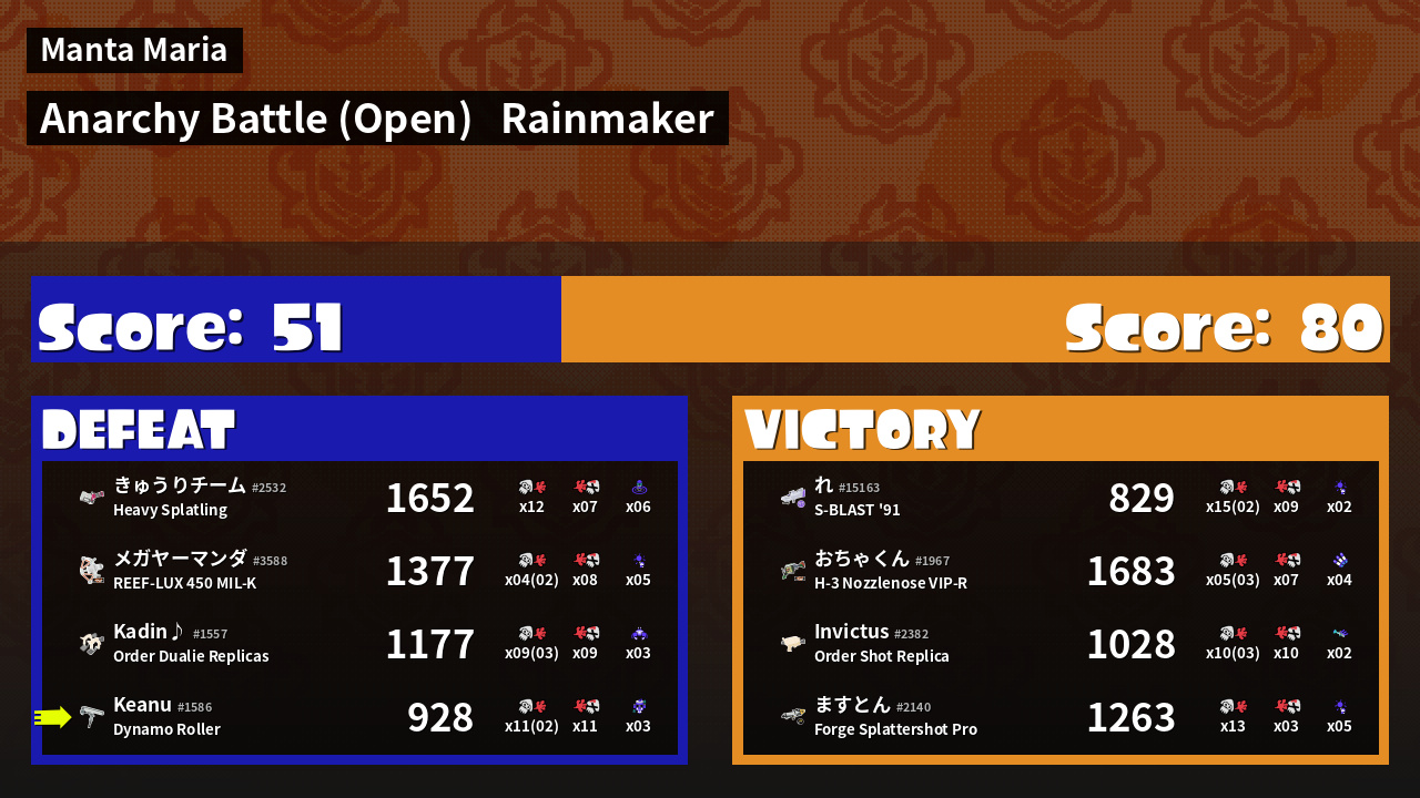| Mode | Rainmaker - Anarchy Battle (Open) | ||