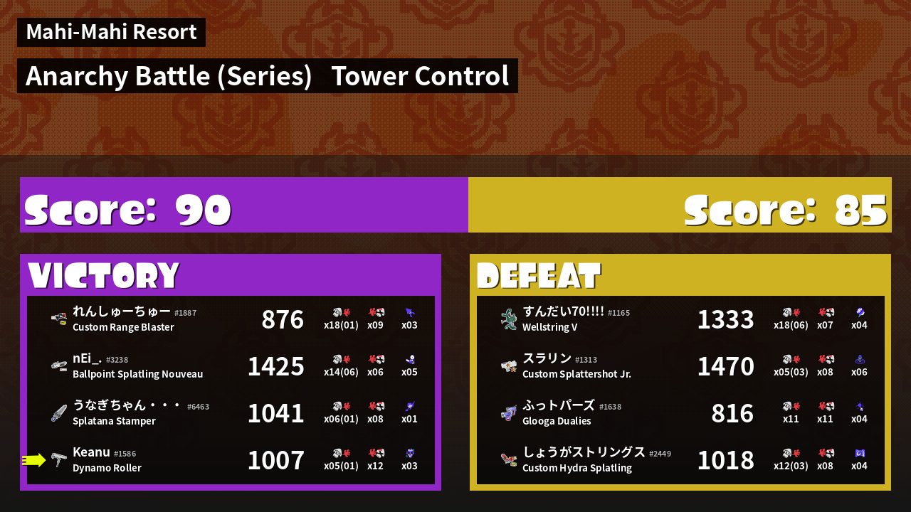 | Mode | Tower Control - Anarchy Battle (Series) | ||