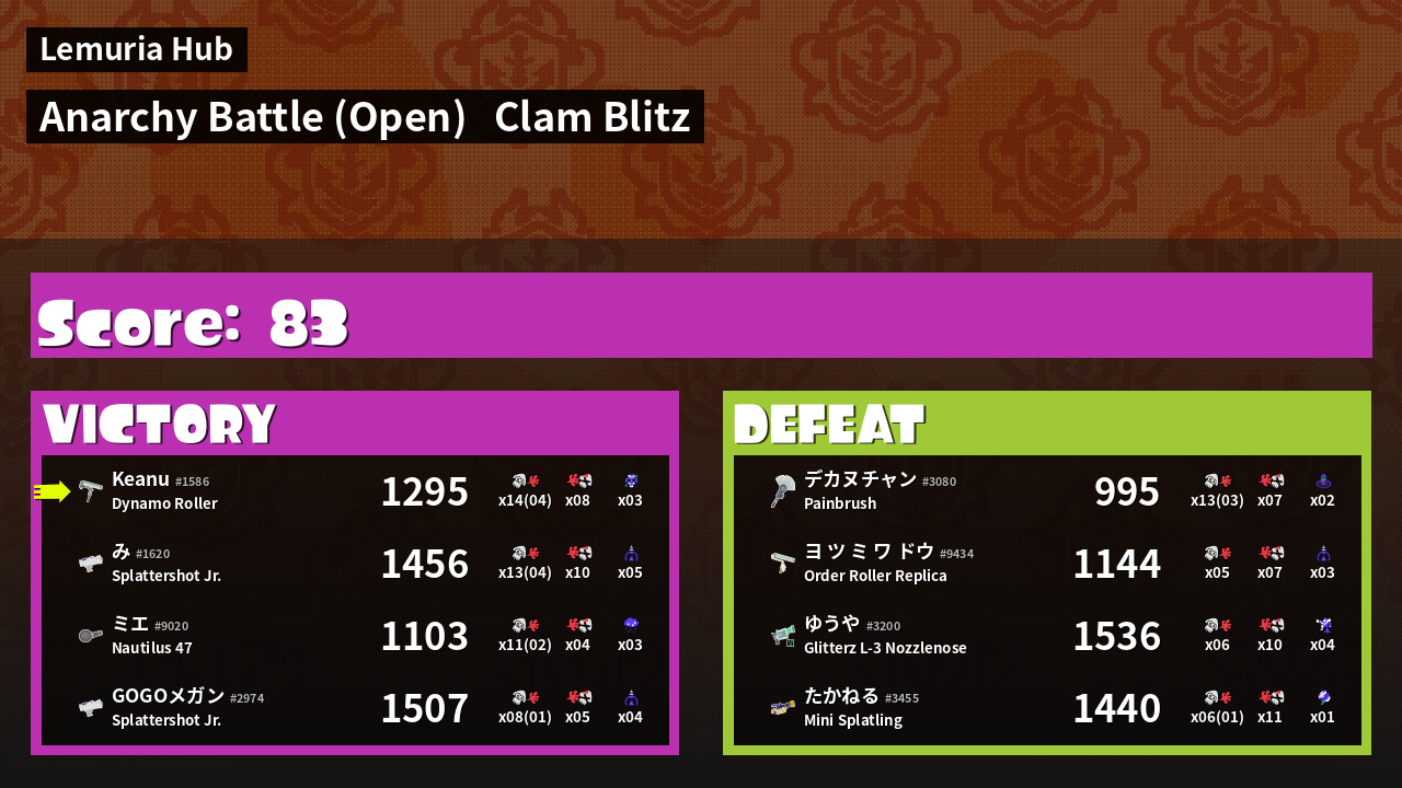 | Mode | Clam Blitz - Anarchy Battle (Open) | ||