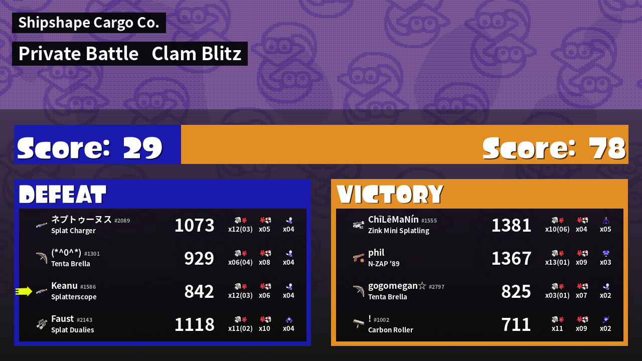 | Medals | #1 Overall Splatter #1 Enemy Splatter #1 Ink Consumer | ||