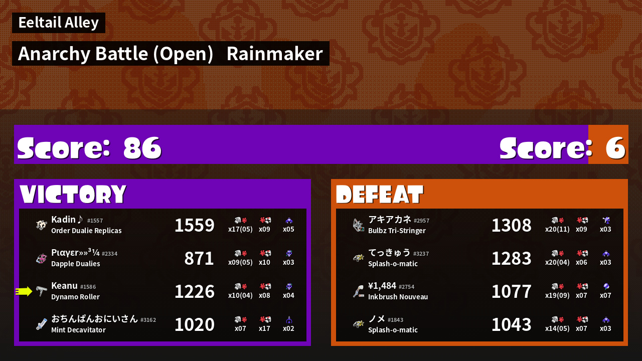 | Mode | Rainmaker - Anarchy Battle (Open) | ||