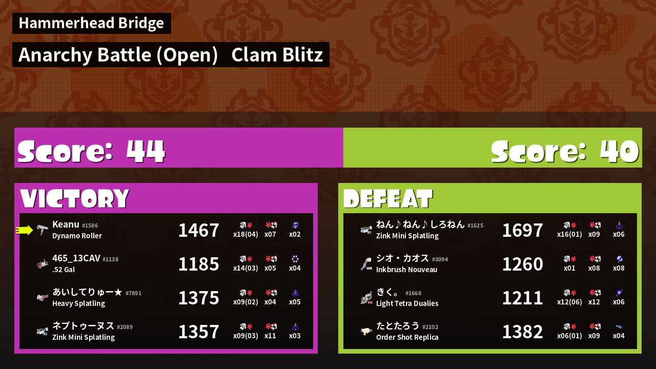 | Mode | Clam Blitz - Anarchy Battle (Open) | ||