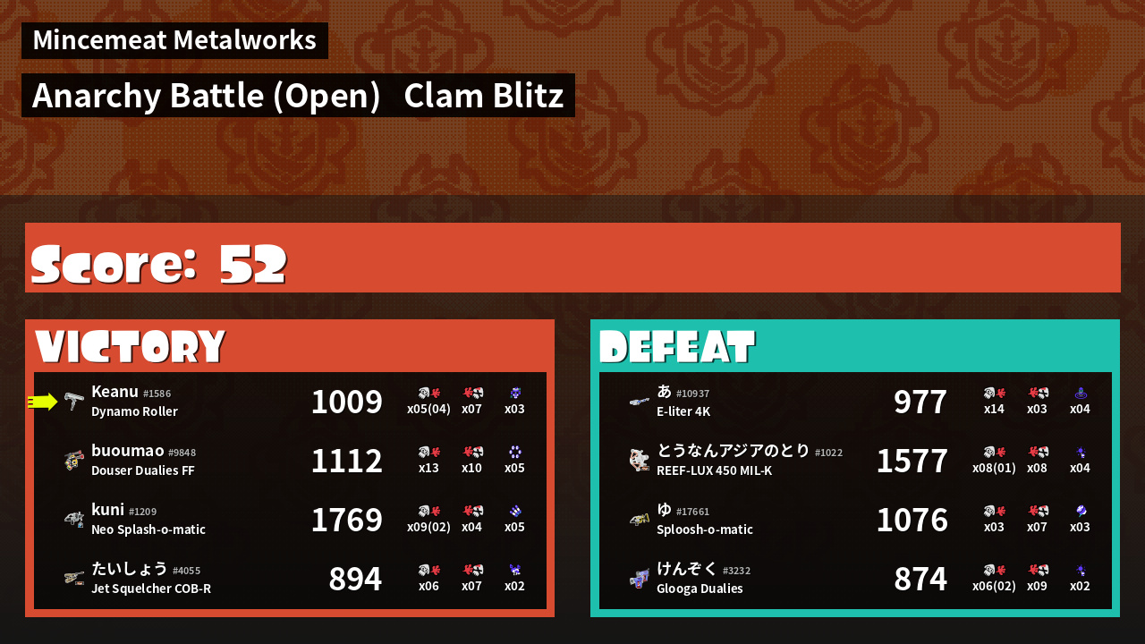 | Mode | Clam Blitz - Anarchy Battle (Open) | ||