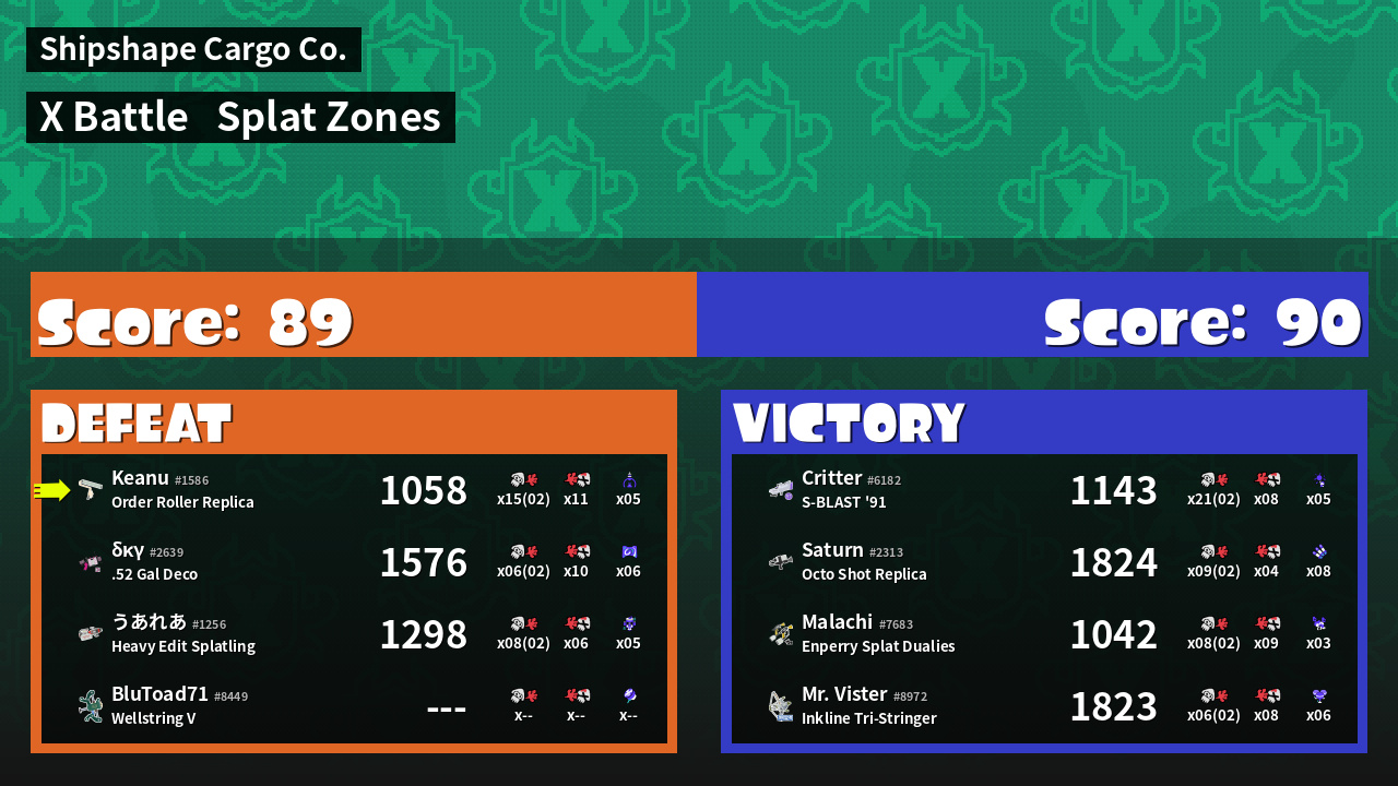 | Medals | #1 Overall Splatter #1 Splat Zone Guard #1 Enemy Splatter | ||