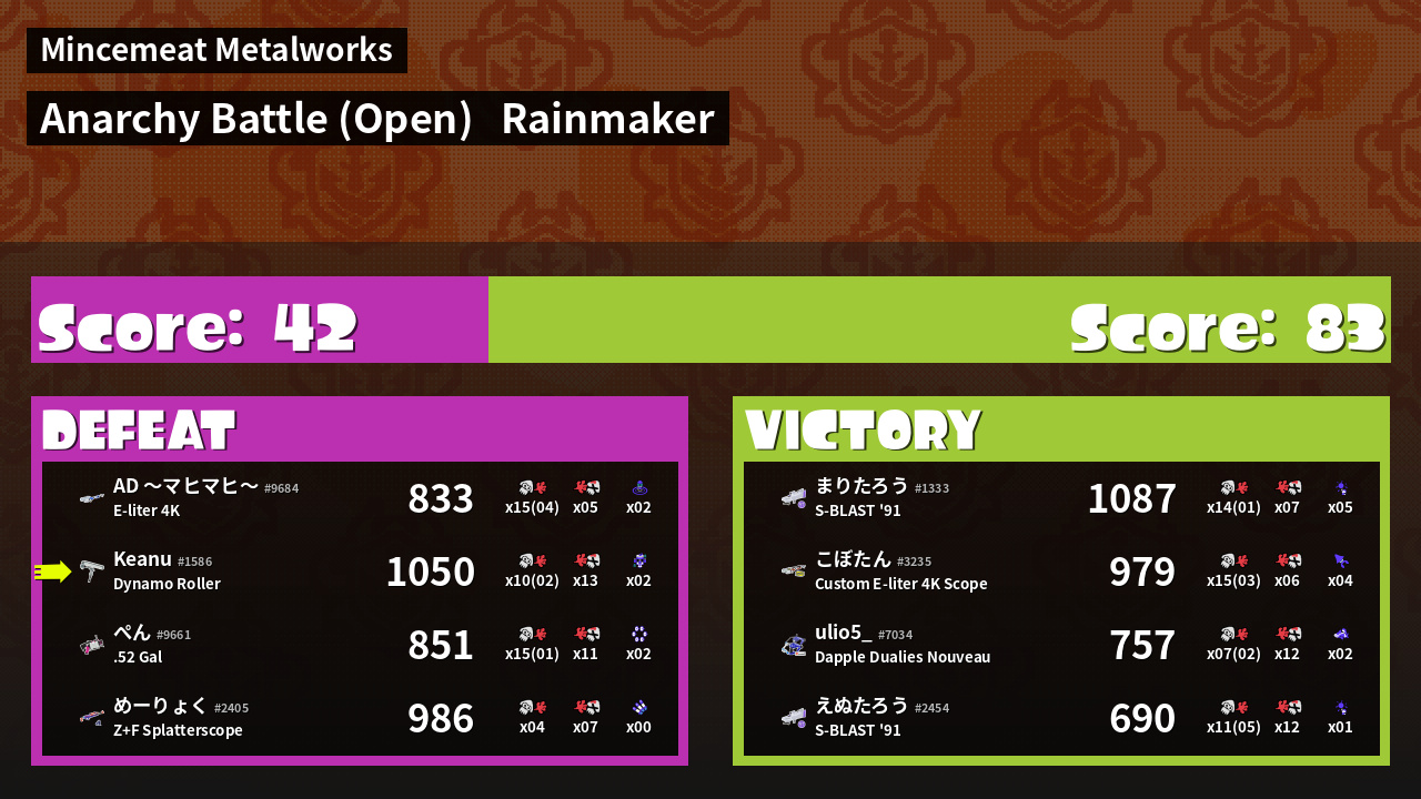 | Mode | Rainmaker - Anarchy Battle (Open) | ||
