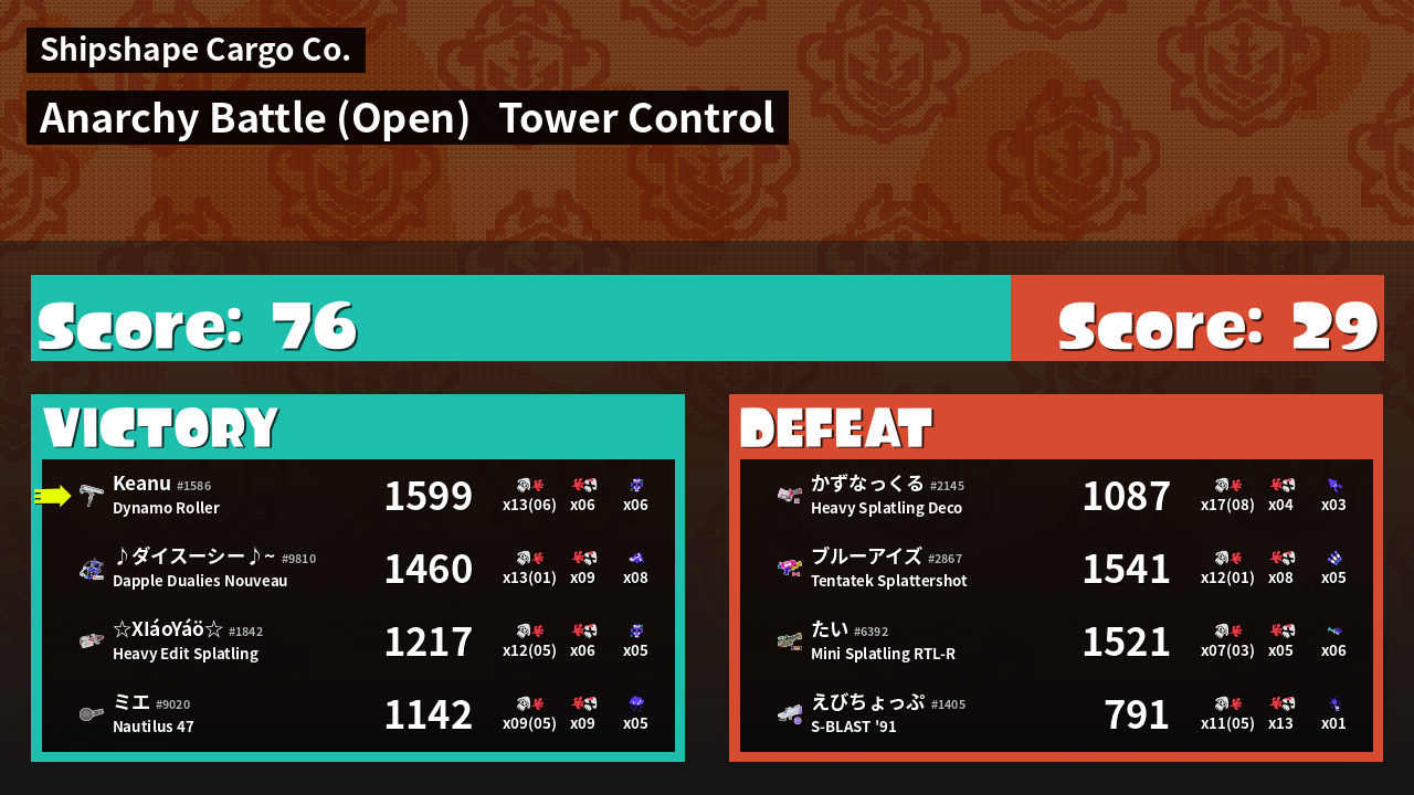 | Mode | Tower Control - Anarchy Battle (Open) | ||