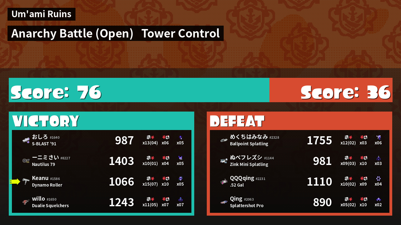 | Mode | Tower Control - Anarchy Battle (Open) | ||