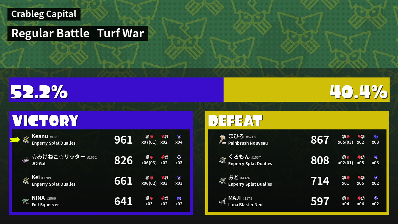 | Medals | #1 Overall Splatter #1 Turf Inker #1 Enemy-Base Inker | ||