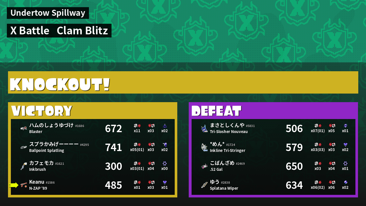 | Mode | Clam Blitz - X Battle | ||