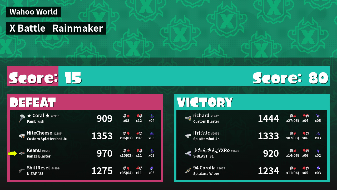 | Mode | Rainmaker - X Battle | ||