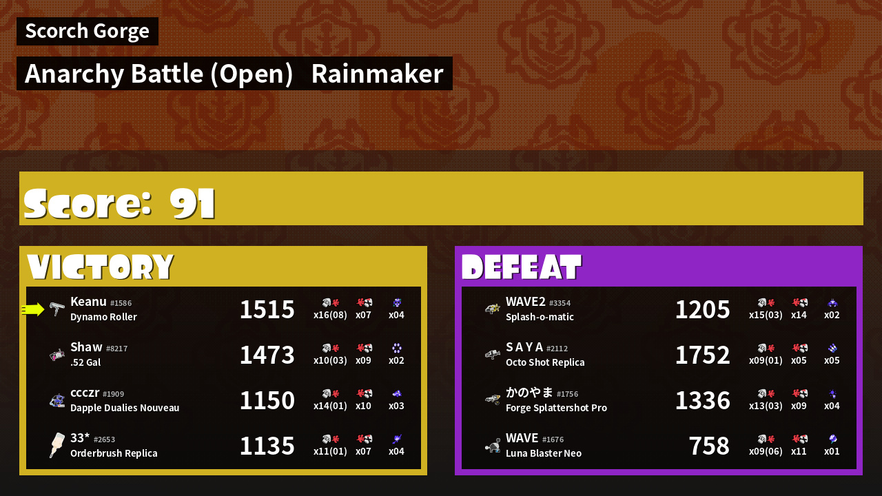 | Mode | Rainmaker - Anarchy Battle (Open) | ||