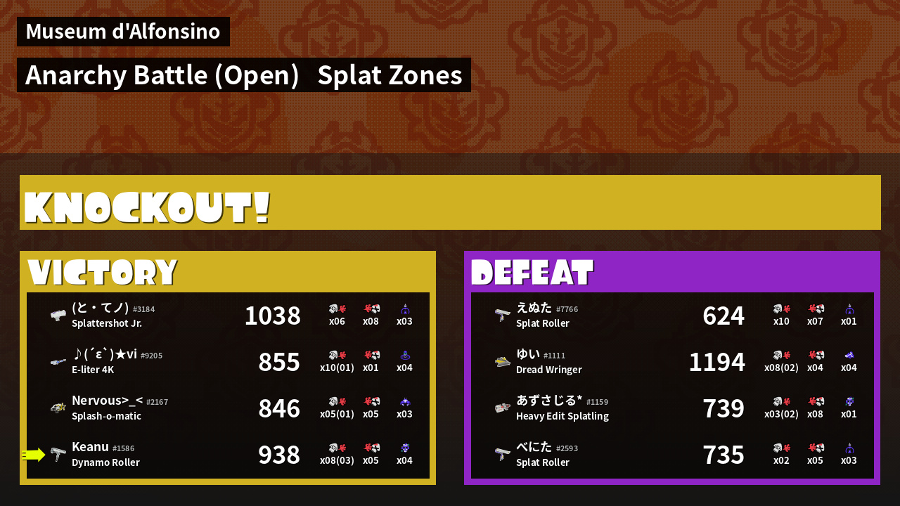 | Mode | Splat Zones - Anarchy Battle (Open) | ||