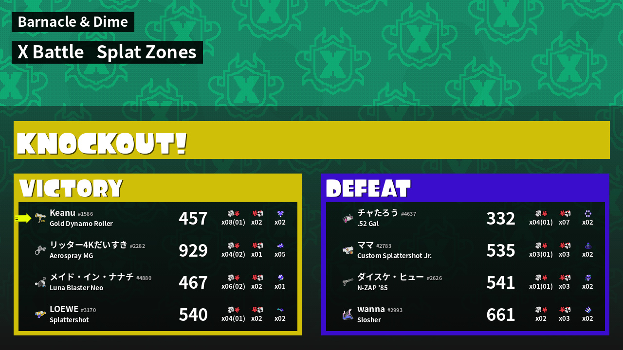 | Mode | Splat Zones - X Battle | ||