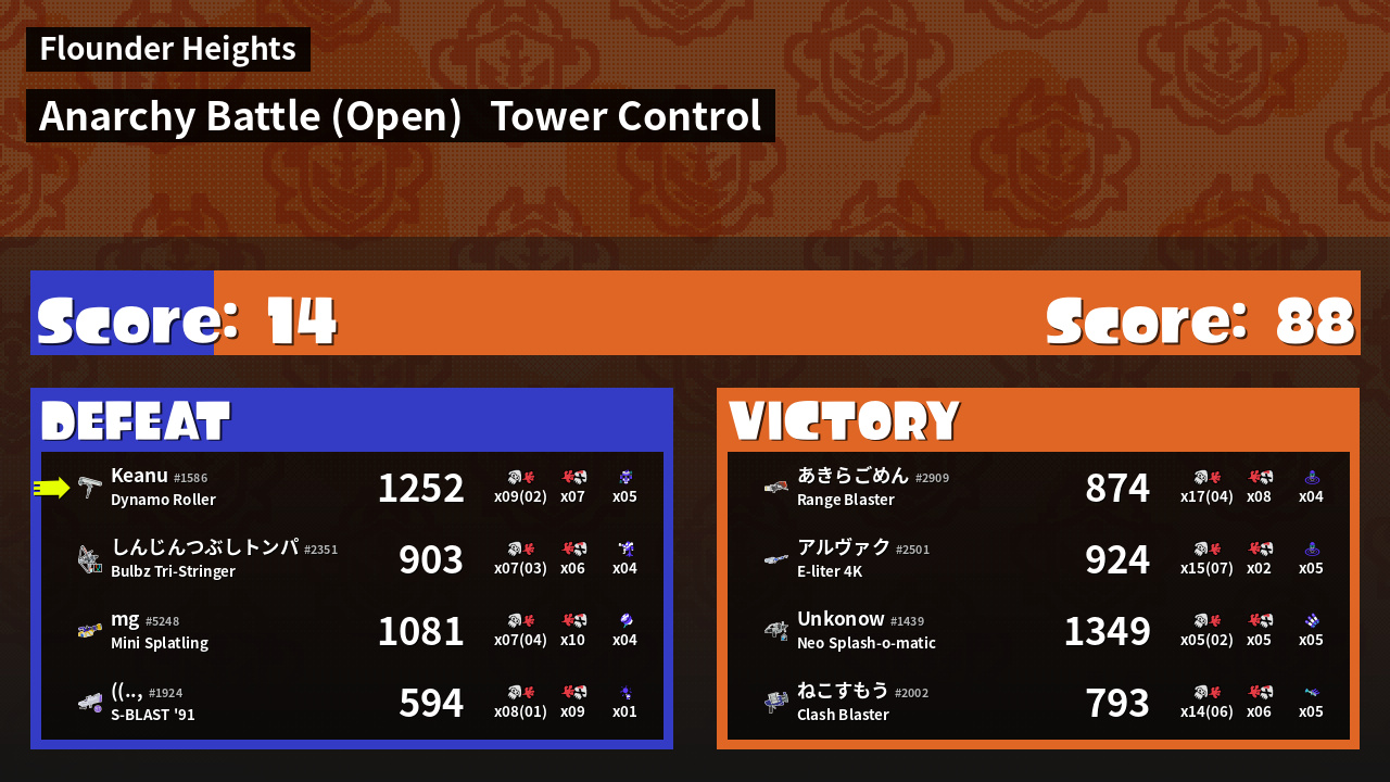 | Mode | Tower Control - Anarchy Battle (Open) | ||