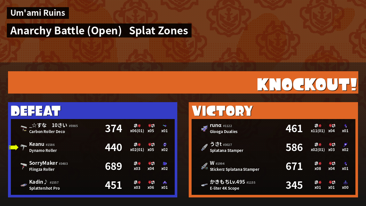 | Mode | Splat Zones - Anarchy Battle (Open) | ||