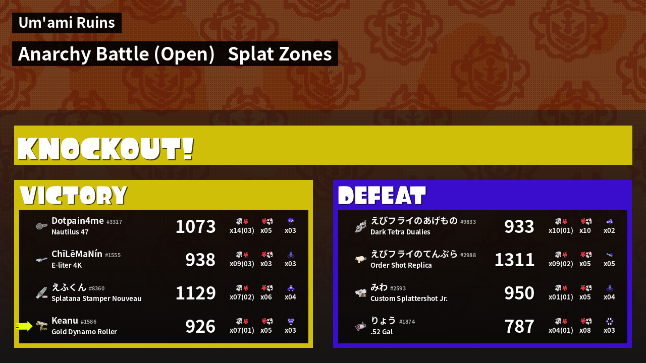 | Mode | Splat Zones - Anarchy Battle (Open) | ||