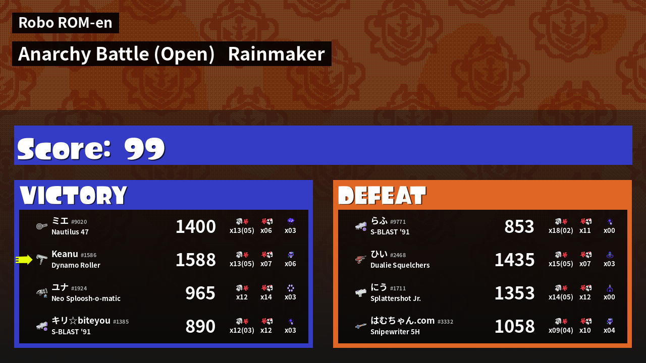 | Mode | Rainmaker - Anarchy Battle (Open) | ||