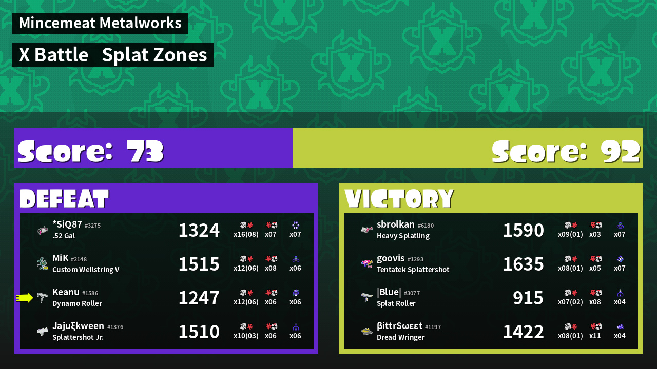 | Mode | Splat Zones - X Battle | ||