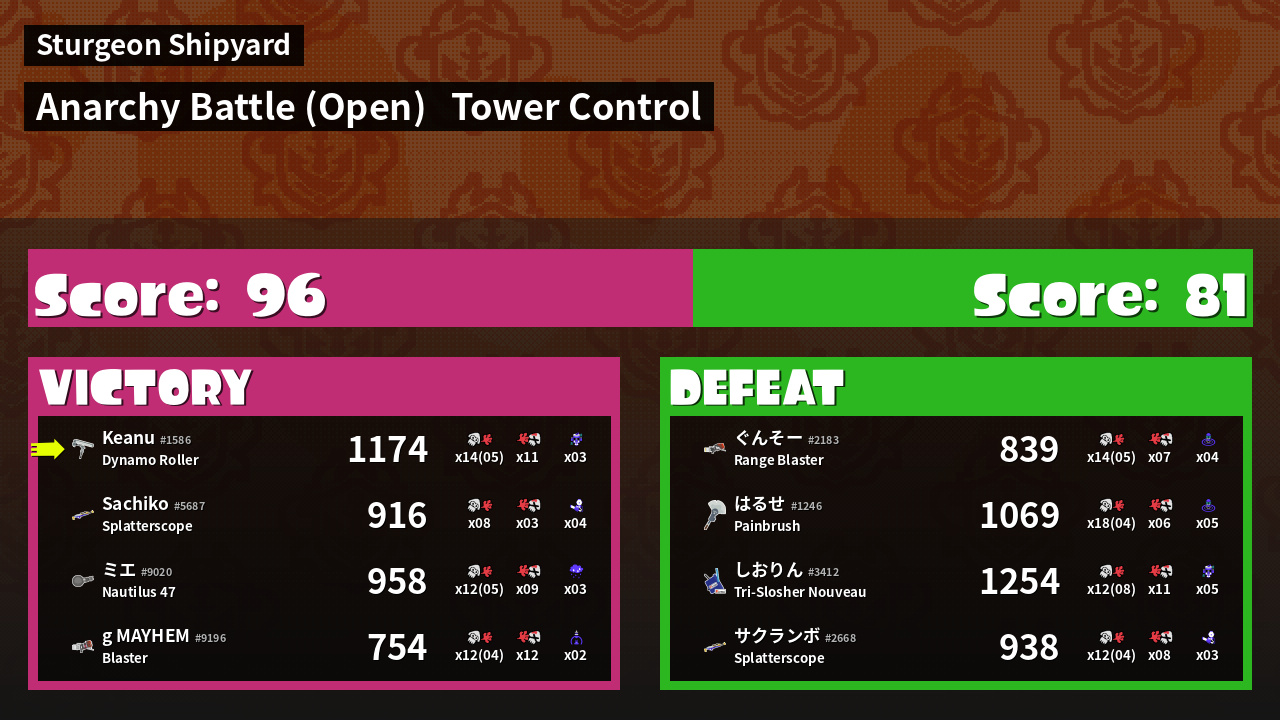 | Mode | Tower Control - Anarchy Battle (Open) | ||