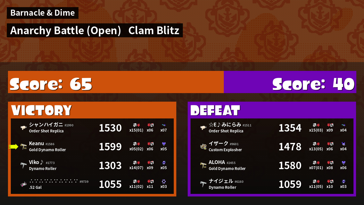 | Mode | Clam Blitz - Anarchy Battle (Open) | ||