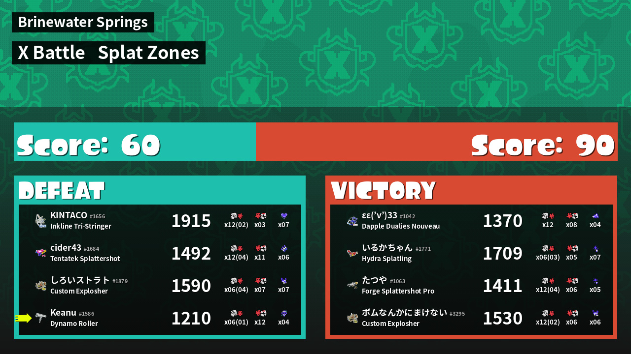 | Weapon | Dynamo Roller ( Sprinkler / Tacticooler) | ||