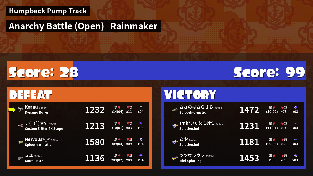 | Mode | Rainmaker - Anarchy Battle (Open) | ||