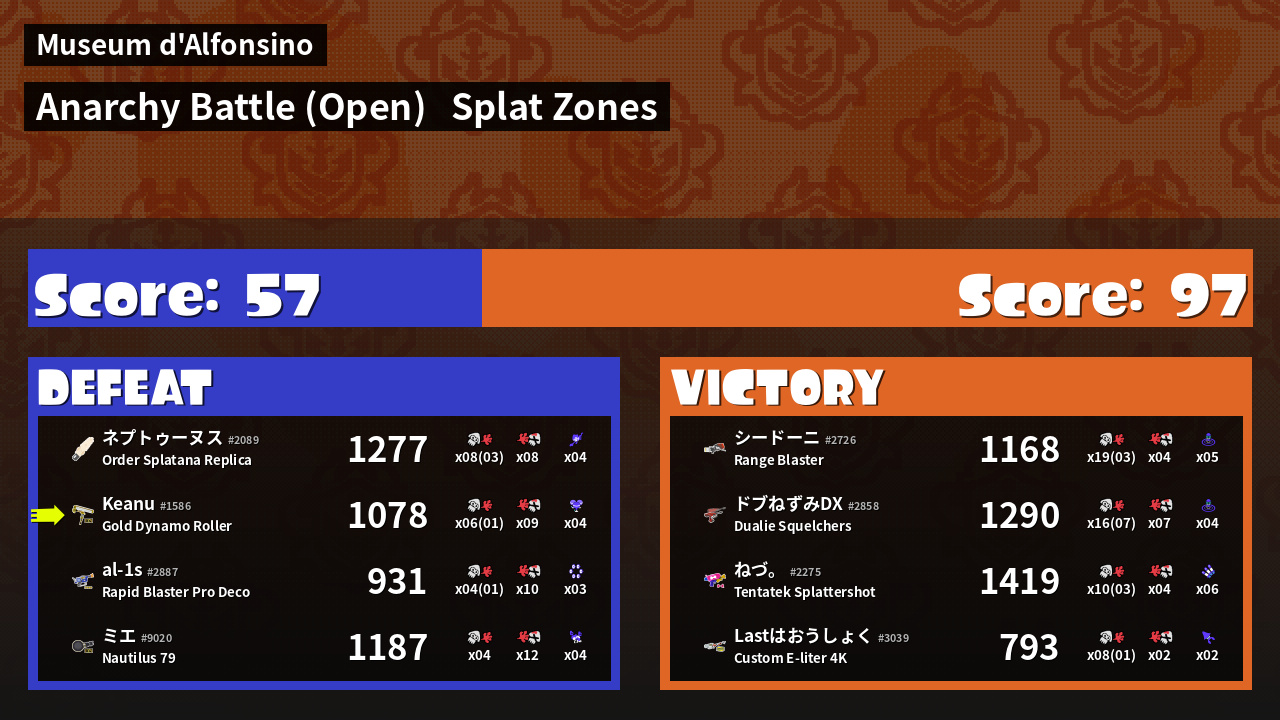 | Mode | Splat Zones - Anarchy Battle (Open) | ||