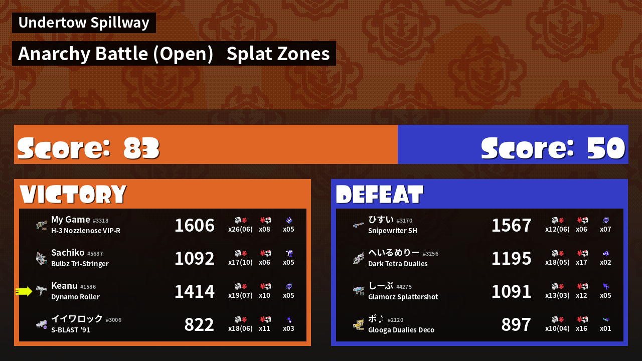 | Mode | Splat Zones - Anarchy Battle (Open) | ||