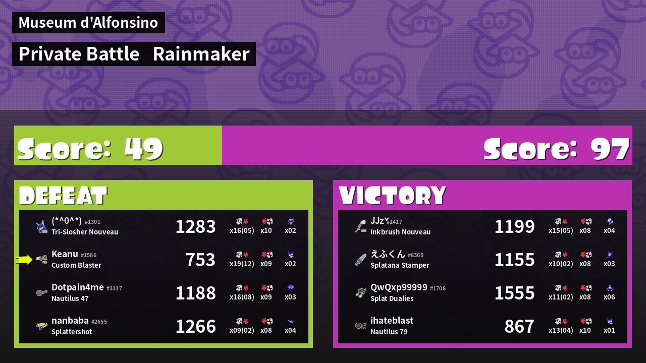 | Medals | #1 Overall Splatter #1 Splat Assister #1 Rainmaker Stopper | ||