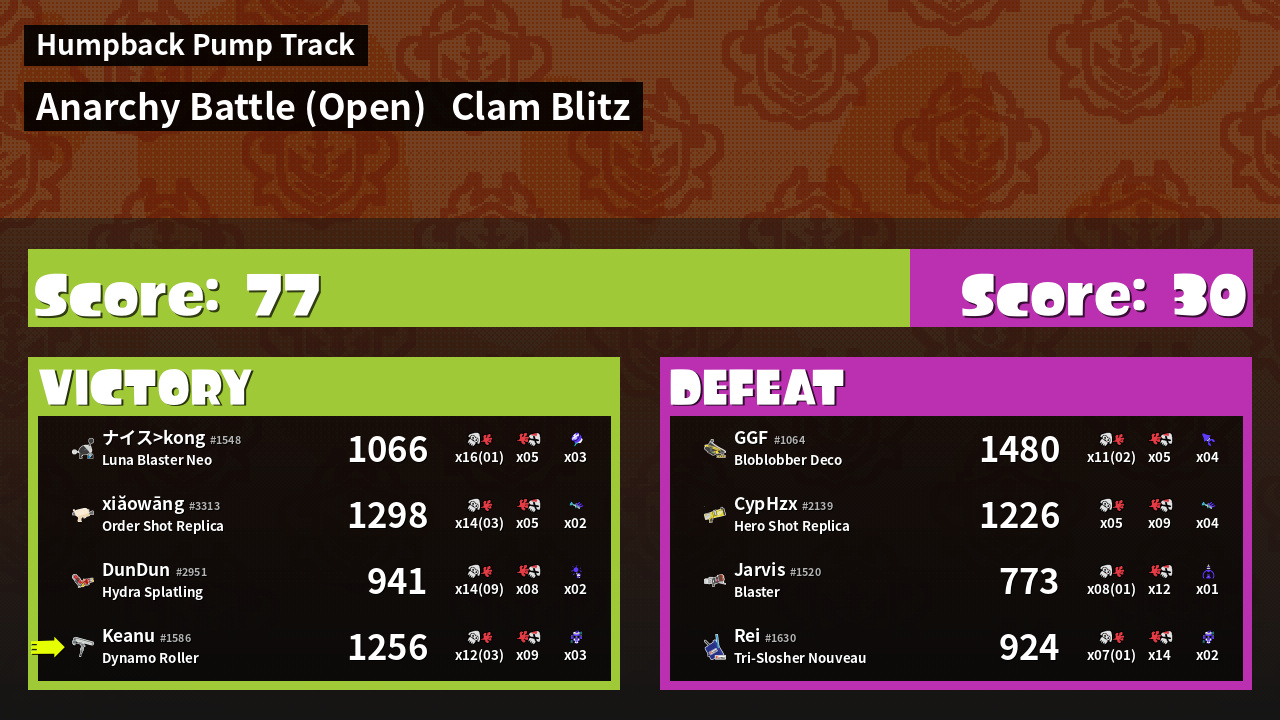 | Mode | Clam Blitz - Anarchy Battle (Open) | ||