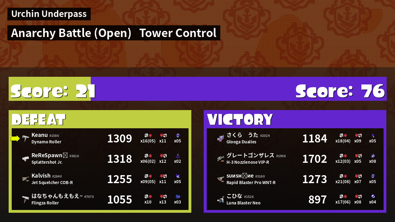 | Mode | Tower Control - Anarchy Battle (Open) | ||