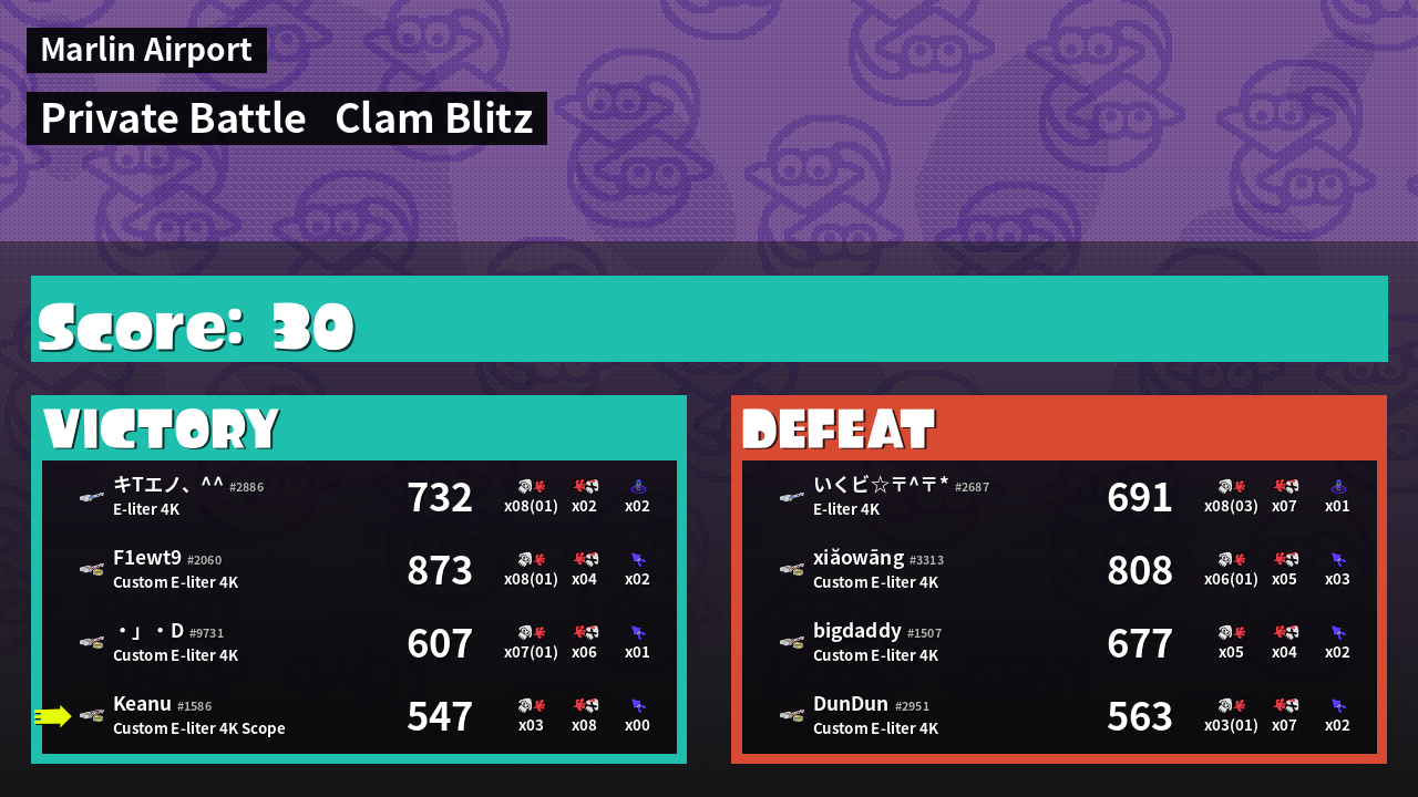 | Mode | Clam Blitz - Private Battle | ||