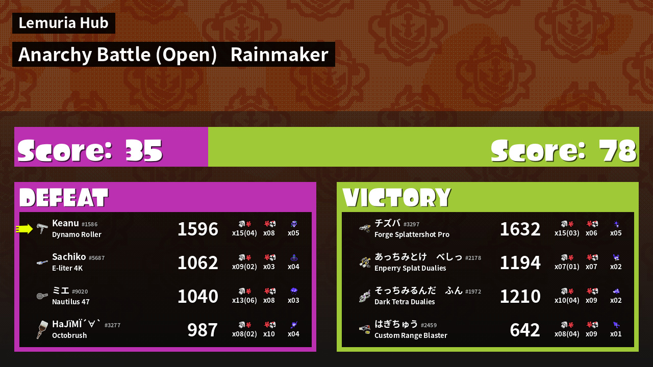 | Mode | Rainmaker - Anarchy Battle (Open) | ||