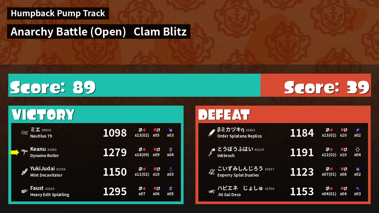 | Mode | Clam Blitz - Anarchy Battle (Open) | ||