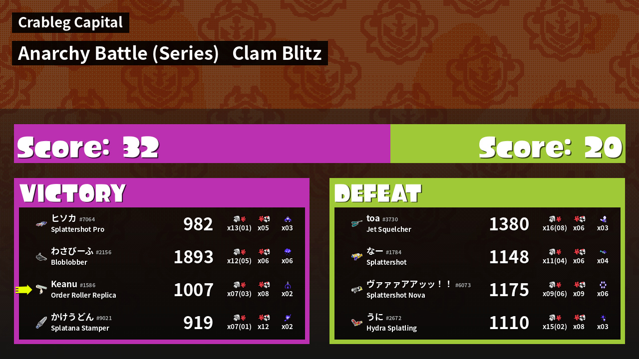 | Mode | Clam Blitz - Anarchy Battle (Series) | ||